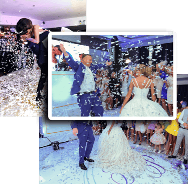 Add a playful, picture-perfect finish to your celebration with floating confetti. Light, elegant, and full of charm—it’s the perfect touch of magic in the air.