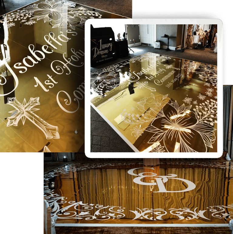 Make a bold statement with our gold metallic dance floors—designed to reflect pure opulence and sophistication. With a mirror-like finish and golden glow, this floor transforms any event into a glamorous affair, perfect for weddings, galas, and high-end celebrations.